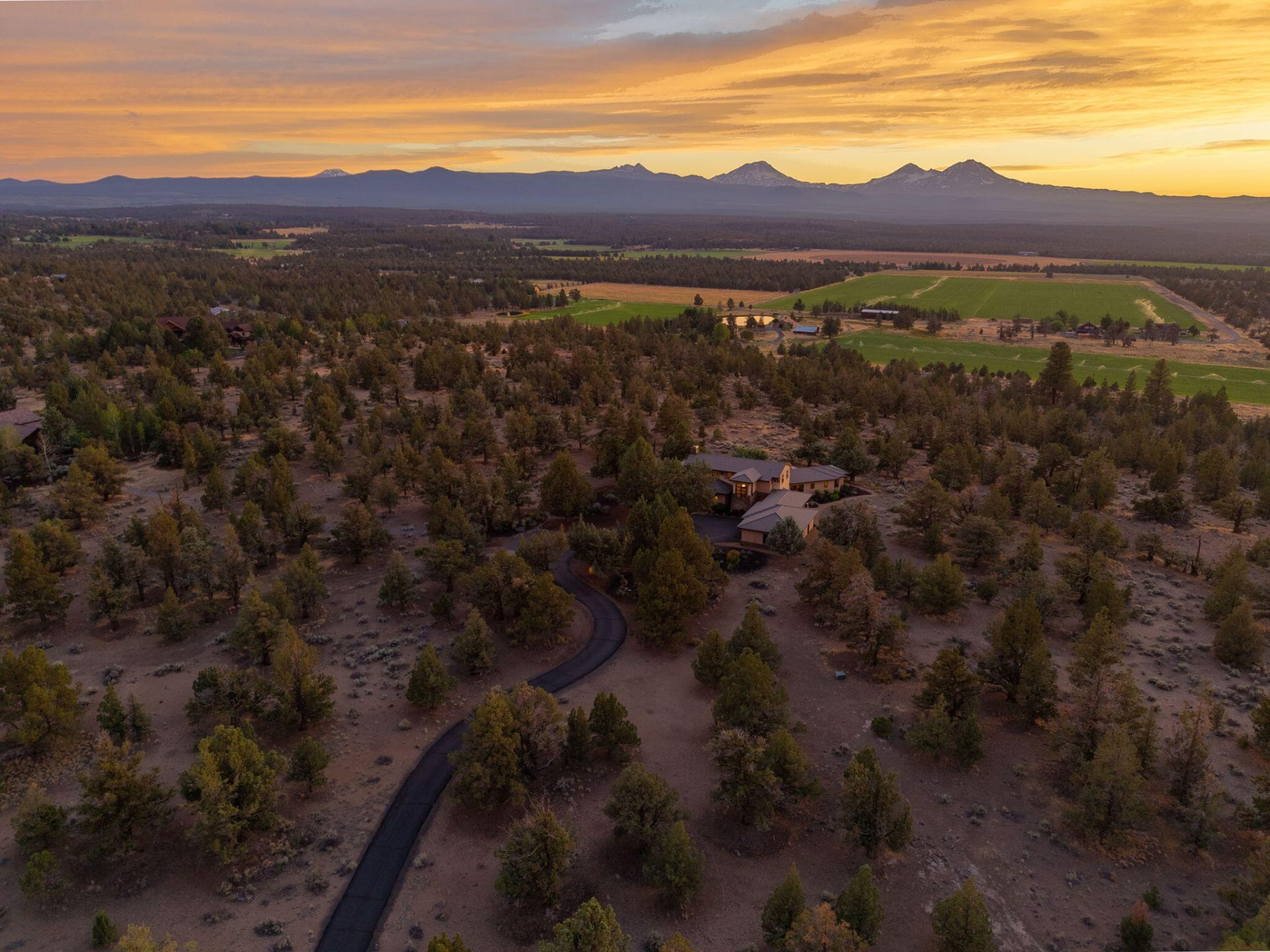 Truly unmatched quality, privacy and serenity in this timeless Sunwest Builders custom home between Bend and Sisters. Situated on almost 10 acres in the exclusive Grand Ridge neighborhood overlooking the Cascade mountains, its location offers access to all central Oregon has to offer. Home features predominantly single level living with mountains views from almost every room in the house. High ceilings, exposed beams and custom woodwork are just a few of the features highlighted this European styled masterpiece. Great separation of space with the main bedroom separated from the rest of the house. Main bedroom suite features workout room with sauna, a private patio with hot top, his and hers closets, a large walk-in shower and soaking tub. This property is a must see.