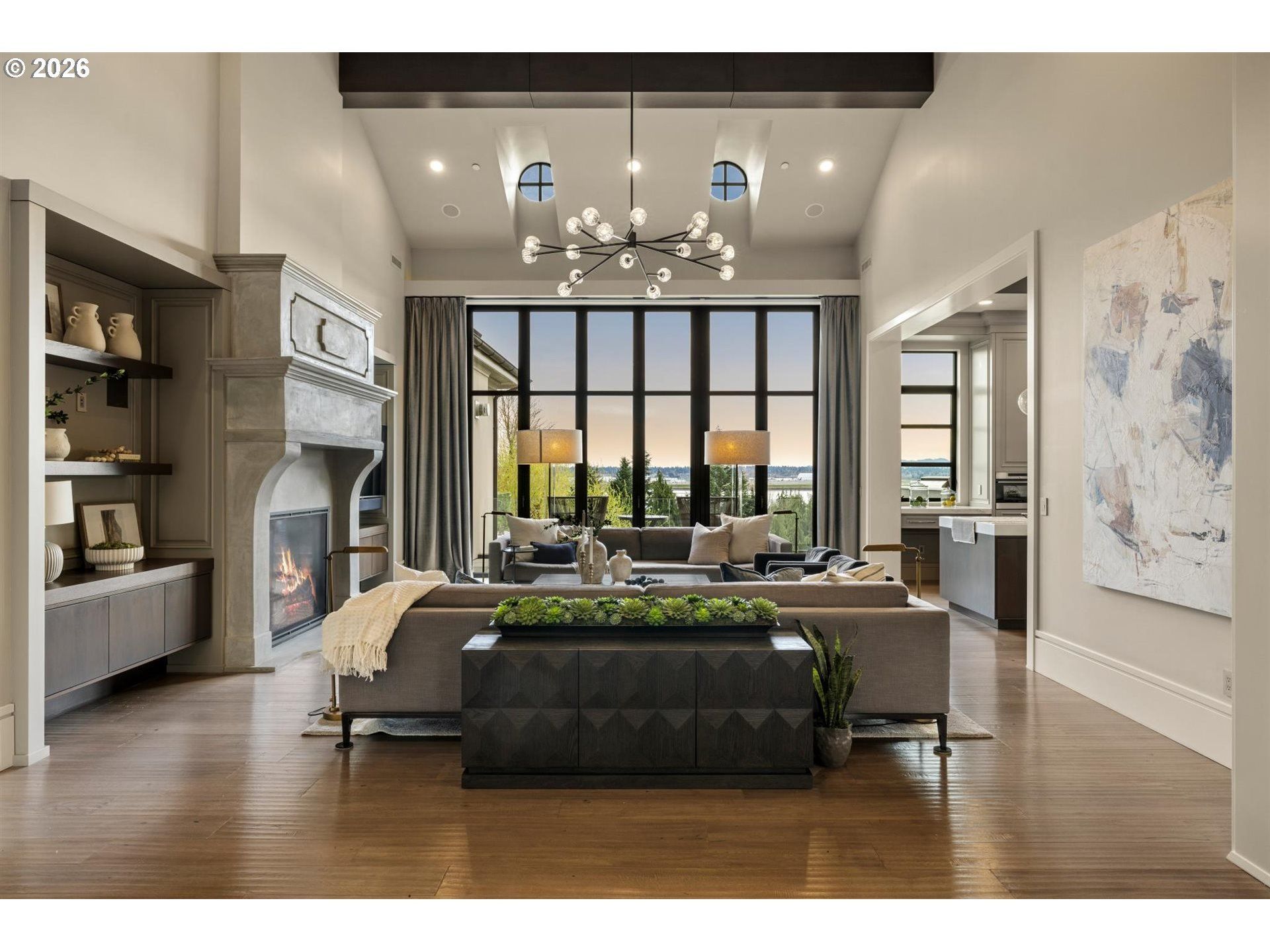 Welcome to your dream estate: a 9,000+ sq ft European-style showpiece sited on 1.75 acres with sweeping Columbia River views along the historic Evergreen Highway in Washington. This exquisitely crafted residence features five generous bedrooms, each with an ensuite bath, and showcases premium materials and authentic European design throughout.Enter through a private gate to pristinely landscaped grounds punctuated by mature olive trees and white hydrangeas-an entertainer's paradise spanning two tax parcels. Inside, soaring ceilings, expansive windows and large sliders bathe the open-concept living areas in natural light and frame the stunning river vistas, creating a seamless indoor-outdoor lifestyle.The gourmet kitchen is a chef's dream, equipped with Wolf appliances, custom cabinetry, a marble double island, and pass-through windows to an outdoor kitchen. A galley-style pantry with dumbwaiter and library ladder provides abundant storage and convenience. The primary suite and adjoining office are exceptional retreats, finished to the highest standard.Outdoor amenities include an oversized pool and spa, a premium gym and sauna, and a private sport court-everything needed for relaxation, fitness, and recreation. This estate is more than a home; it's a full-time vacation and a lifestyle destination, perfect for hosting family and friends or savoring peaceful, luxurious living.
